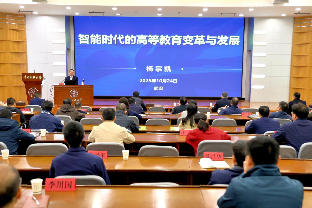10月24日上午,国家数字化学习工程技术研究中心和教育大数据应用技术国家工程实验室主任杨宗凯教授应邀来校作了题为《智能时代的高等教育变革与发展》的专题报告。全体在校校领导、各单位主要负责人在学术交流中心主会场参加学习,各单位副处级干部、科室负责人,教学单位系主任及专业负责人在各分会场通过线上直播参加学习。讲座由校党委副书记、校长刘义主持。