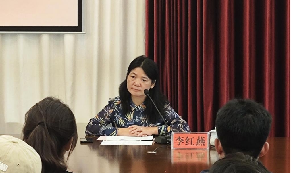 李红燕作辅导报告。党委组织部供图