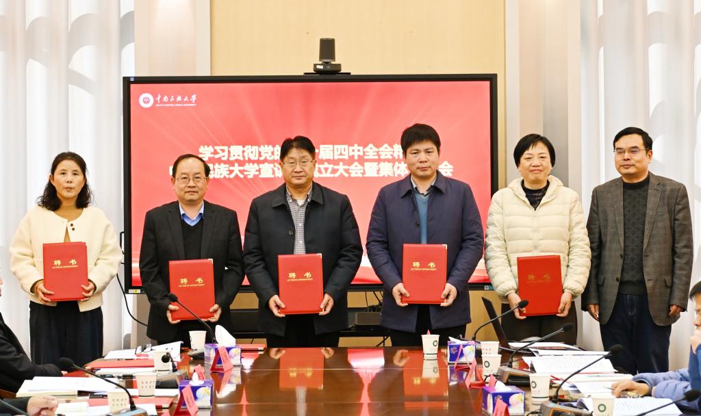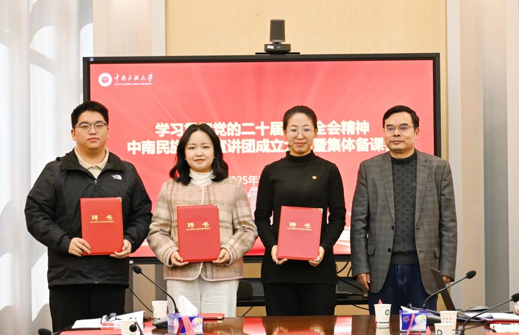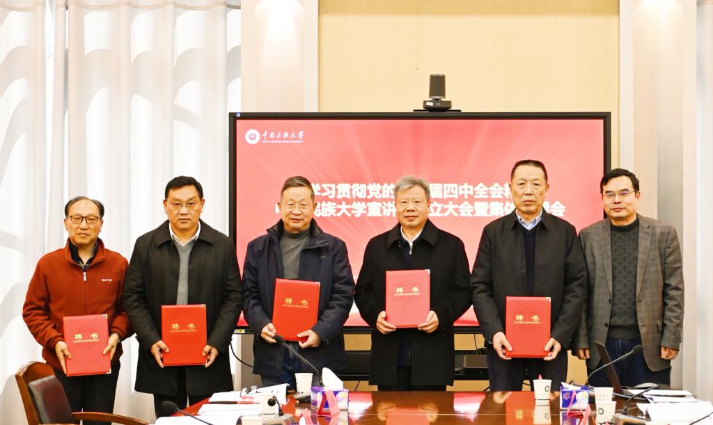会上,马玉堂传达学习了国家民委党组、湖北省委关于学习贯彻党的二十届四中全会精神的相关文件精神,宣读了学校宣讲团、“银龄”宣讲团、青年学生宣讲团成员名单。徐业勤为学习贯彻党的二十届四中全会精神威尼斯886699宣讲团成员颁发聘书。
