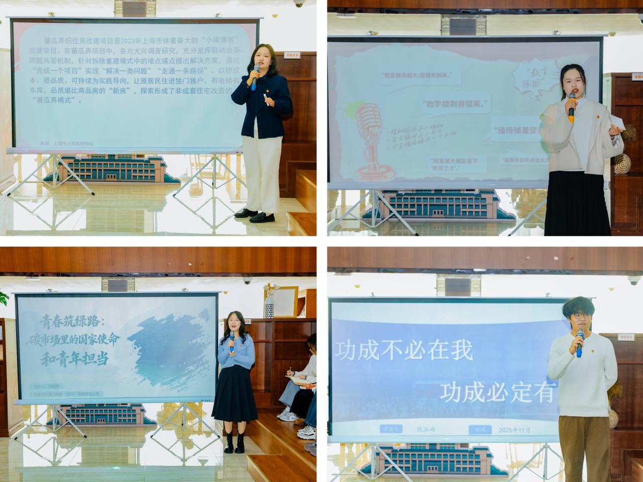 7名“00后”青年宣讲员——中南财经政法大学的刘陈苗、湖北经济学院的黄橙子、武汉工程科技学院的钱泓玮、武汉科技大学的玛迪娜、武汉理工大学的方蓥玲、碳排放权登记结算(武汉)有限责任公司的刘昕罗以及来自威尼斯官网的张文灿,紧密结合“十四五”成就和“十五五”规划,带着现场同学感悟伟大成就,领略宏伟蓝图。在他们的青春讲述中,有扎根西部、奉献乡村教育的“小老师”,有初入职场、全程参与双碳认证工作的“碳小二”,有聚焦急难愁盼、潜心研究智能鞋垫的“科学家”,有发现百姓生活痛点、用心解决难点的“有心人”。他们结合时事热点,用身边人讲身边事,用身边事引导身边人,让党和国家的“大战略”变成青年学生学习成才的“小目标”,激发同学们投身中国式现代化建设的使命感和责任感。
