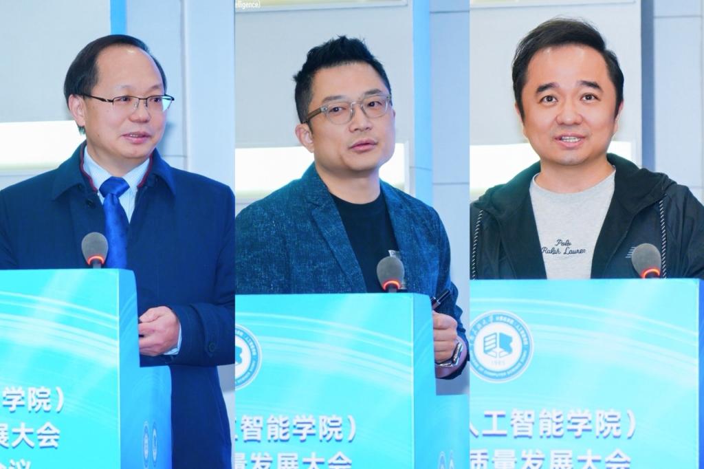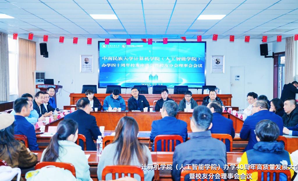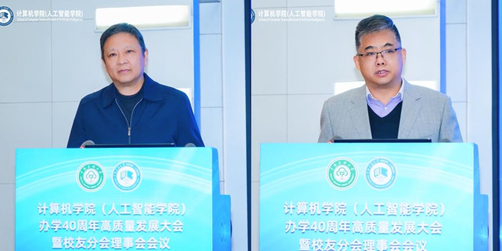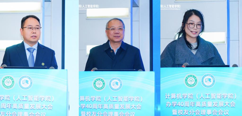 计算机学院(人工智能学院)院长帖军作学院发展报告。学院老教师代表宋中山教授满怀深情地分享了与学院共同成长的39载岁月。青年教师代表施朦博士围绕“回望、前行、同心”3个关键词,表达自己作为一名青年教师的感怀与期盼。
