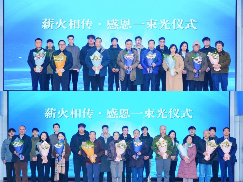 在“薪火相传·感恩一束光”仪式上,校友代表向18位薪火传人教师代表献上鲜花,表达对恩师谆谆教诲的无限感恩与崇高敬意,展现了学院精神血脉的赓续与流淌。