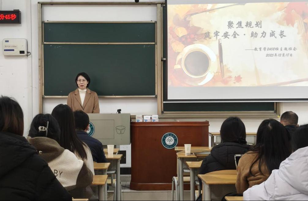 12月18日,校党委常委、总会计师包莉娜参加教育学2402班“聚焦规划·筑牢安全·助力成长”主题班会。教育学院班子成员、辅导员、班导师与教育学2402班全体同学共同完成这场兼具思想深度与实践意义的成长交流会。