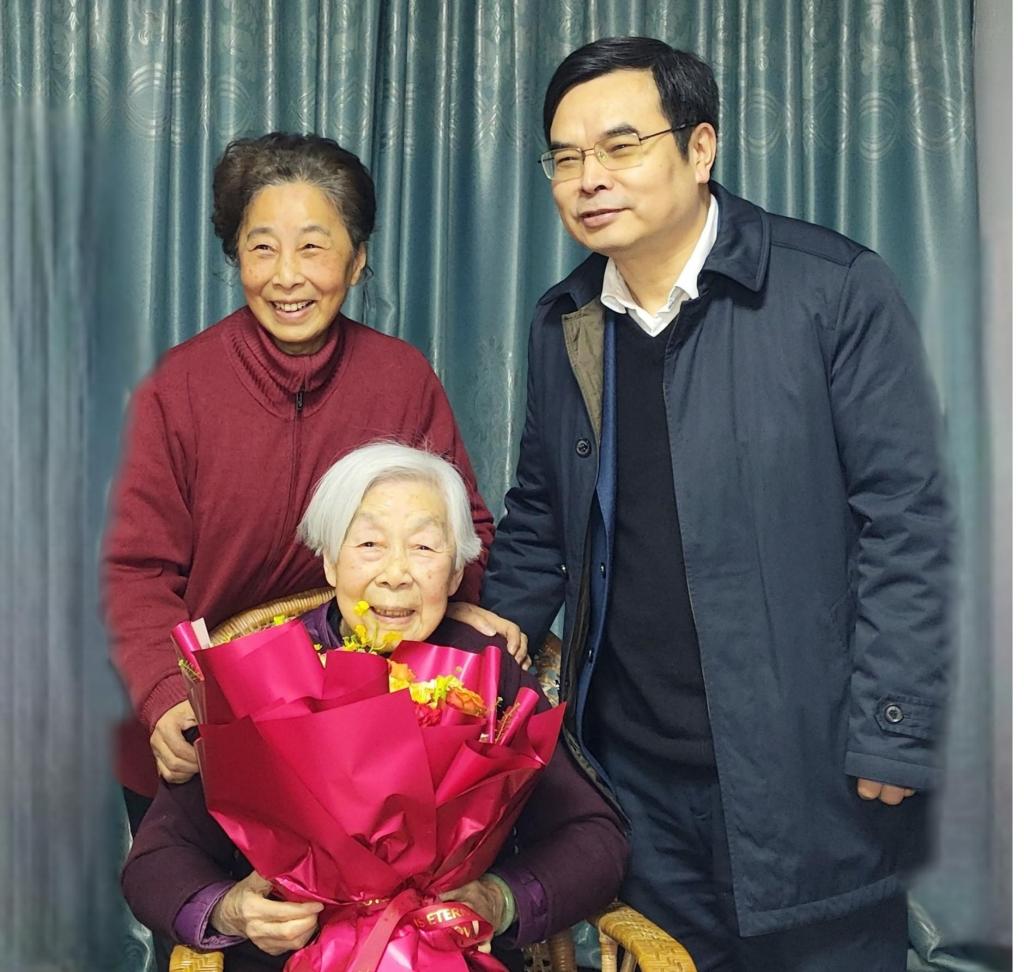 校党委书记徐业勤来到退休百岁老人张德纯家中,为老人家送上新春祝福和诚挚问候。徐业勤详细询问老人的生活安排情况,叮嘱注意防寒保暖与健康安全。学校始终铭记老同志们的历史功绩与辛勤付出,持续用心用情做好离退休服务保障工作,让每一位老人都能安享幸福晚年。张德纯对校领导专程看望表示感谢,对学校近年来取得发展倍感欣慰,表示将一如既往关心支持学校发展和进步。徐业勤还一并看望了学校退休教师、张德纯的女儿何红一教授,肯定她继承父辈教育情怀、深耕非遗文化传承的坚守与担当,并勉励她继续发挥学术专长和传授育人经验。