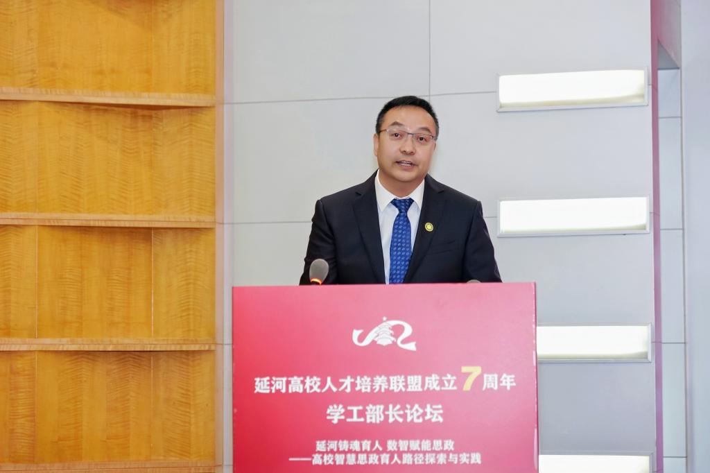 马玉堂代表学校致欢迎辞。他表示,学工论坛是延河联盟各高校凝聚育人共识、共享实践成果、共谋发展的重要平台。此次论坛既锚定红色基因铸魂育人的价值坐标,也契合数字时代思政工作创新发展的命题,期待与会同仁畅所欲言、深度交流,共筑协同育人“同心圆”,共探人智协同“新范式”,共守立德树人“初心使命”。