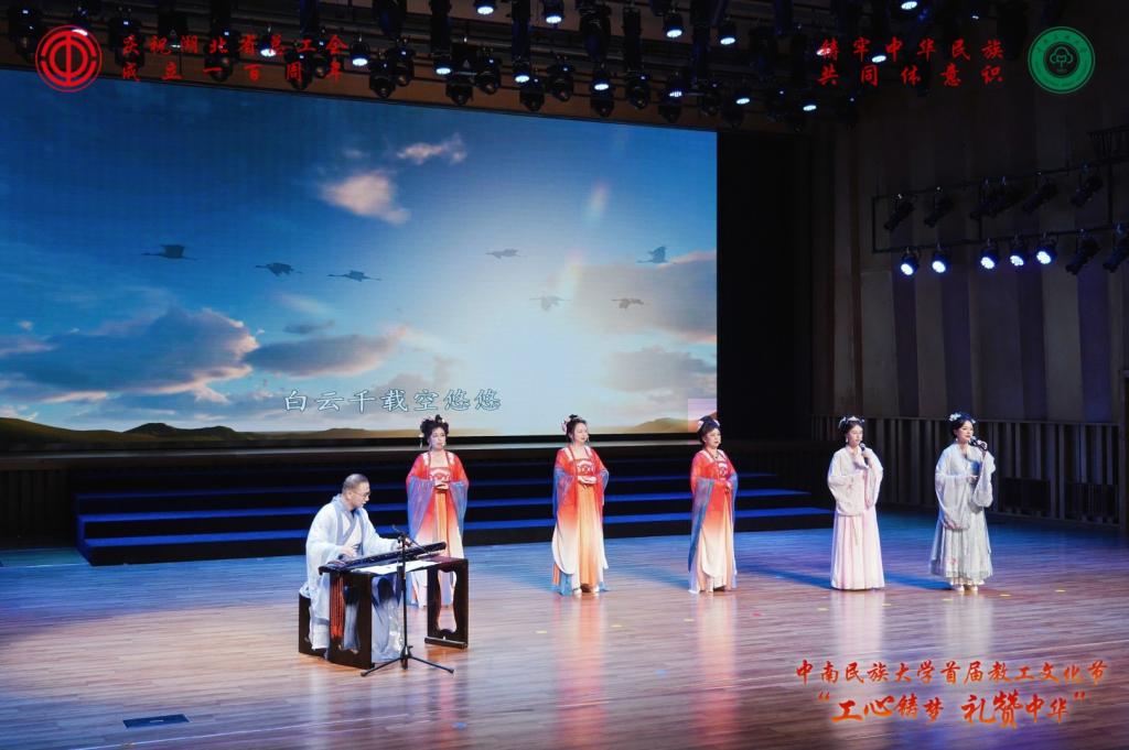 汇演现场,平日里潜心治学的老师们化身艺术使者,用歌声、舞姿、诵读等多种形式,展现了民大教职工的别样风采与家国情怀,赢得了现场观众的阵阵掌声。