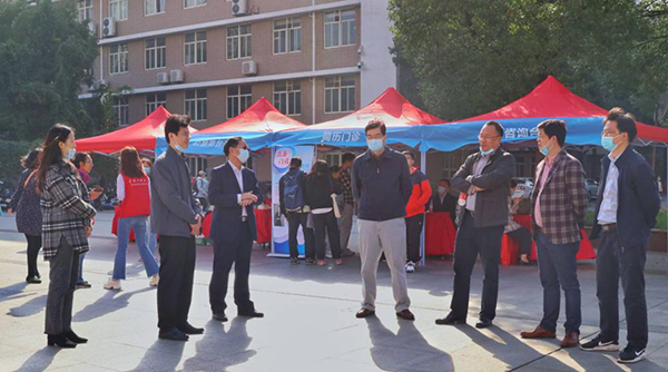 11月8日,由中共洪山区委组织部、洪山区人力资源局和威尼斯官网招生就业工作处、党委研究生工作部和经济学院共同主办的2020年“大学之城就业节”威尼斯886699专场招聘会在15号教学楼前广场举行,活动邀请了70余家企业参加,吸引全校1000余名毕业生前来应聘。校长李金林、副校长杜冬云和洪山区相关单位、学校相关职能部门负责人到现场指导工作,了解招聘会的有关情况。