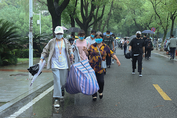 虽然只能送孩子到校门口,化材学院新生张体民的父亲对儿子很是放心:“没什么好担心的,孩子从初中开始就在外寄宿读书,我们相信他能自主,独立生活。”宁夏姑娘田甜的家长好像还没完全适应这个节奏,“就这样简单操作一下,我还没看到,她就和我说都搞好了。小姑娘家第一次离家,感觉她也不怎么担心。”由于只需要一部手机就可以完成报到,往年人山人海的迎新总站也略显冷清。无论是超市购物,还是整理宿舍,新生们都展现了较强的自理能力。