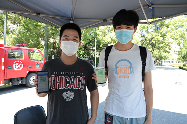 返校学生展示“健康码”。刘虹 摄