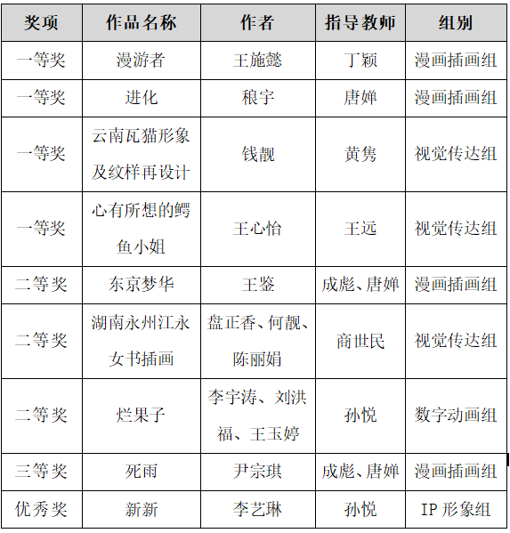 另外,11月6日,第十五届中国好创意暨全国数字艺术设计大赛获奖名单在官方微信公众号“仚仚共享艺术”公布。美术学院学生获国家级奖项9项,其中一等奖4项,二等奖3项,三等奖和优秀奖各1项。