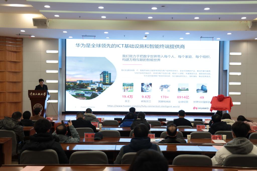 韩叶盛致欢迎辞。他强调,华为创新班的建立是校企双方深化合作的重要内容,是学校加强与国内一流企业合作,推动培育创新型复合人才,服务国家战略的重要措施,也是学校产业学院建设重要环节。他希望双方以创新班为契机,通过抓专业、抓课程、抓教材、抓技术、抓实践、抓教师,充分发挥双方特长共同推进新工科人才培养水平,提升校企合作层次,服务国家与社会需求。