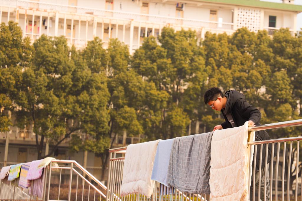 返校学生晒被子。刘虹 摄