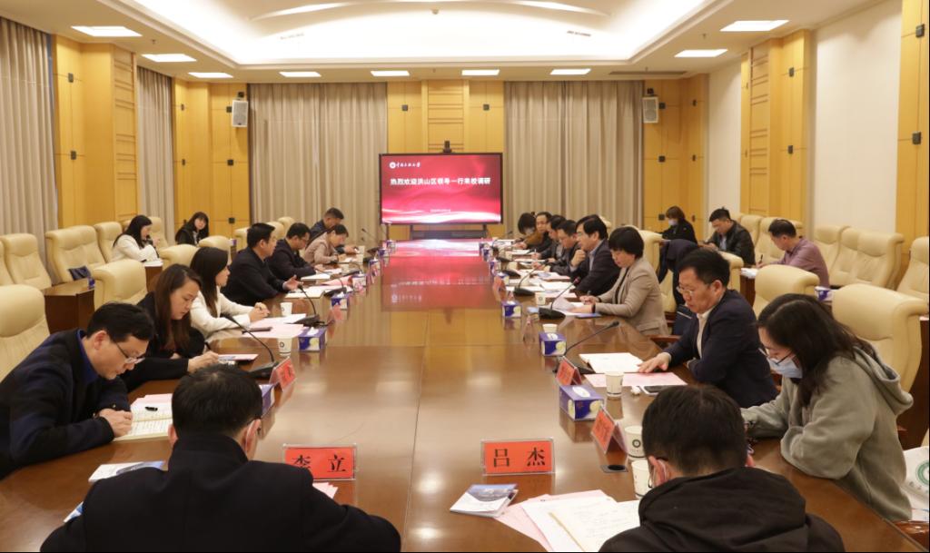 3月31日下午,武汉市洪山区委常委、组织部部长朱绍华,区人力资源局党组书记、局长徐晓娟,区大学之城办党组书记、主任黄艳,关山街党工委、办事处主任黄莉,区科经局、区委两新工委等单位相关负责人走访威尼斯官网,深入了解学校科技成果转化、人才队伍建设相关工作情况,深化区校合作。校党委副书记、校长李金林,校党委常委、组织部部长蔡琼以及相关部门负责人、相关教师参加座谈会。会议由蔡琼主持。