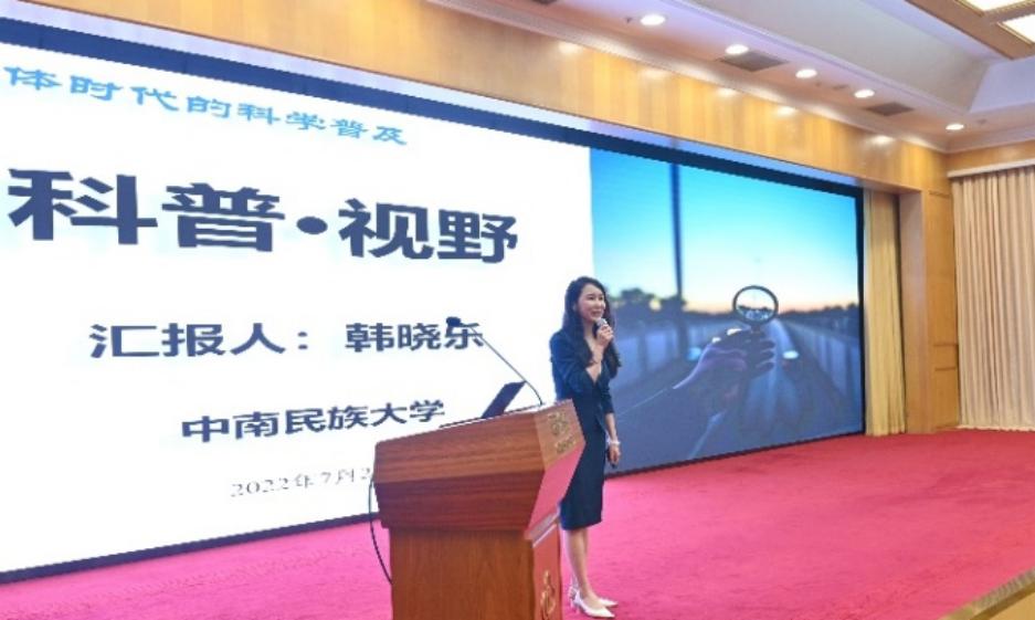 座谈会上,全国网络科普大V代表及网络媒体平台以“新媒体时代下的科学普及”为主题,先后作专题报告和交流发言。韩晓乐老师以《科普·视野》为题,结合自己开展科普工作的经历以及将科普教育融入育人工作的感受提出新时期科普人才培养的新视角;以新媒体迅猛发展为背景,客观分析了科普创作与传播面临的机遇与挑战,并就新媒体时代下做好科普工作提出了建议与思考。该专题报告受到与会领导、专家的一致好评。