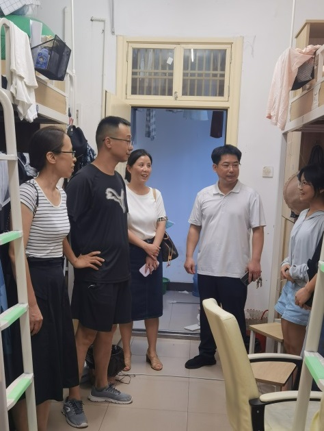 为深入了解暑期留校学生思想、学习和生活状况,加强安全教育, 扎实做好管理服务工作,8月1日、6日,马克思主义学院领导汤振华、黎海波、李建青、瞿晓琳、朱磊及学工办主任金瑶一行先后深入南区学生宿舍和北区学生公寓,走访慰问学院暑期留校学生。