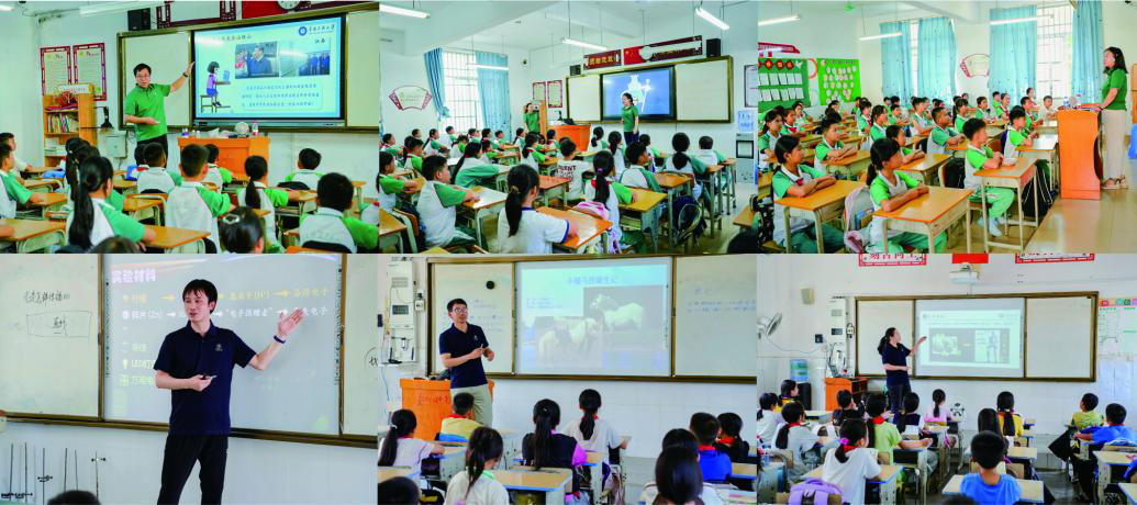 随后,科普团教师成员分别在两所小学开展了生动有趣的科普讲座。电信学院白迪老师以《芯片的奥秘》为题,介绍了芯片的基本结构与现代电子信息社会的重要作用;药学院周莉老师通过《神奇的肠道菌群王国》讲座,讲解了人体微生物群的生态功能和健康意义;计算机学院田莎莎老师与王芷琳同学共同呈现《走近人工智能》讲座,通过智能机器人展示和互动体验,让同学们领略了人工智能的神奇;化材学院李琳和梅鹏老师分别开展《“我”就是神奇的催化剂》和《水果也能发电?——柠檬电池的秘密》讲座,揭示了化学反应的催化机制与化学电池工作原理;资环学院占伟老师以《水污染及水环境保护》为题,通过实验展示了水污染的治理方法,并倡导节约用水;生科学院于孟飞老师以《小矮马的诞生记》为题,科普现代生物育种与繁殖技术,展现生命科学与畜牧业的紧密结合,引发了学生浓厚兴趣。