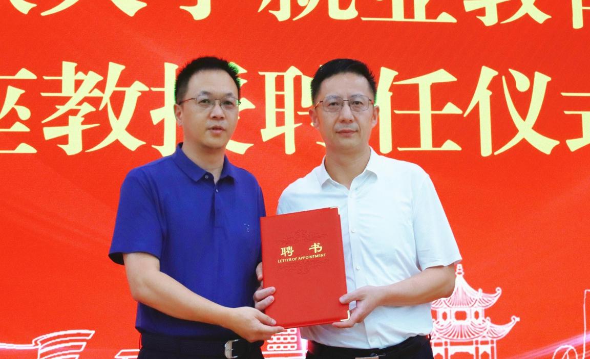 覃瑞向夏晓华颁发聘书。就业与校友工作处供图