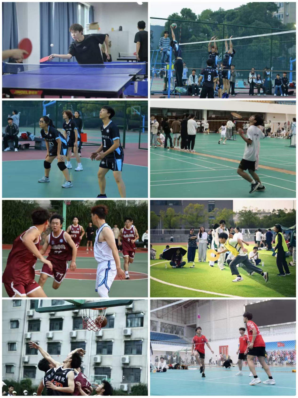 传统竞技赛事包含篮球、排球、羽毛球、乒乓球、毽球五类竞赛,各学院代表队尽显昂扬斗志与竞技风采。篮球场上,队员们攻防兼备、配合默契,迅捷的运球、精准的传球、果断的投篮与顽强的防守交替上演,每一次精彩对决都点燃现场气氛,观众席上掌声、呐喊声此起彼伏;排球赛场上,选手们起跳扣杀、拦网防守、默契传接,用舒展的动作与坚韧的毅力诠释着“团结就是力量”的体育真谛;羽毛球赛场精彩纷呈,网前轻挑、后场重杀、灵活变线,选手们以精湛球技与敏捷身手展开强强对话,每一分争夺都扣人心弦;乒乓球台前,发球抢攻、削球防守、弧圈对拉等技巧轮番呈现,选手们凝神专注、反应迅速,尽显国球运动的独特魅力;毽球比赛则洋溢着传统体育的鲜活气息,盘、磕、拐、蹦等花式动作轮番上演,选手们以扎实功底让传统运动在校园焕发新活力,展现了中华优秀传统体育文化的生命力。