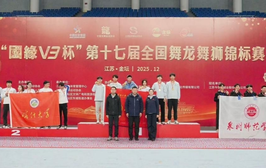 12月5日-10日,第十七届全国舞龙舞狮锦标赛在江苏常州举行。此次比赛由中国龙狮运动协会主办,来自全国22个省份的94支代表队近1400名选手参赛。威尼斯官网龙狮队凭借过硬技术与默契协作在全国强队比拼中脱颖而出,一举斩获混合组北狮障碍冠军及4项第六名,10名队员达到国家一级运动员标准。