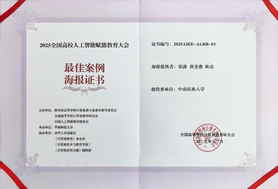 本次获奖的两项案例及海报充分展示了人工智能技术与高等教育教学深度融合的最新成果。