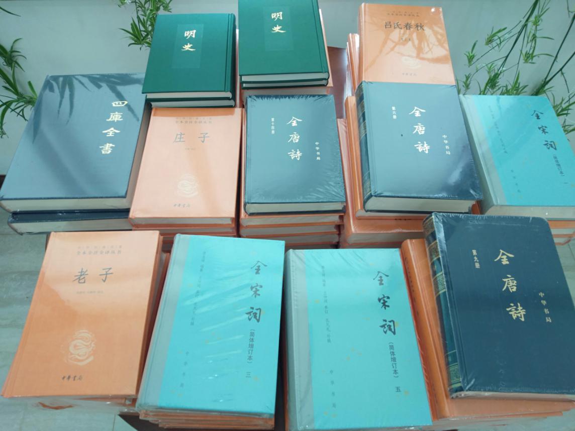 近日,校友李鸿然、刘菊英伉俪向学校图书馆捐赠典藏版图书。为庆祝母校70华诞,他们自费购置了《中华经典名著》《四库全书典藏版》《点校本二十四史》《全唐诗》《全宋词》各一套,共441册,价值1.6万余元。