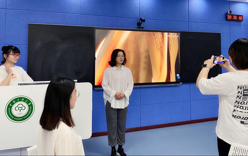 这次活动的负责人外国语言文学专业的彭娣表示,举办此次活动是为了向党的二十大献礼。同学们一起商量统一着装,规范朗诵姿态,保持语言自然流畅,努力完成满意的诗歌朗诵作品。