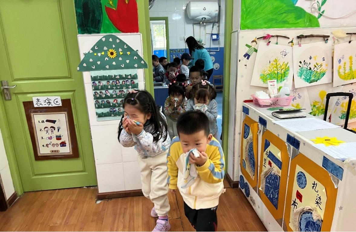 教室里,孩子们一个接一个拿着毛巾到水池打湿,用湿毛巾捂着口鼻,秩序井然地从教室分别向3个操场疏散。4月21日上午,附属幼儿园与保卫处联合开展全园师生消防疏散演练。这是幼儿园国家安全教育系列活动的重要内容。