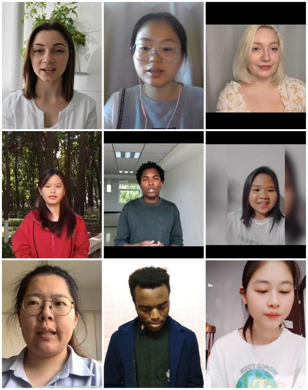 中外学生诵读诗歌并录制视频。国际教育学院供图