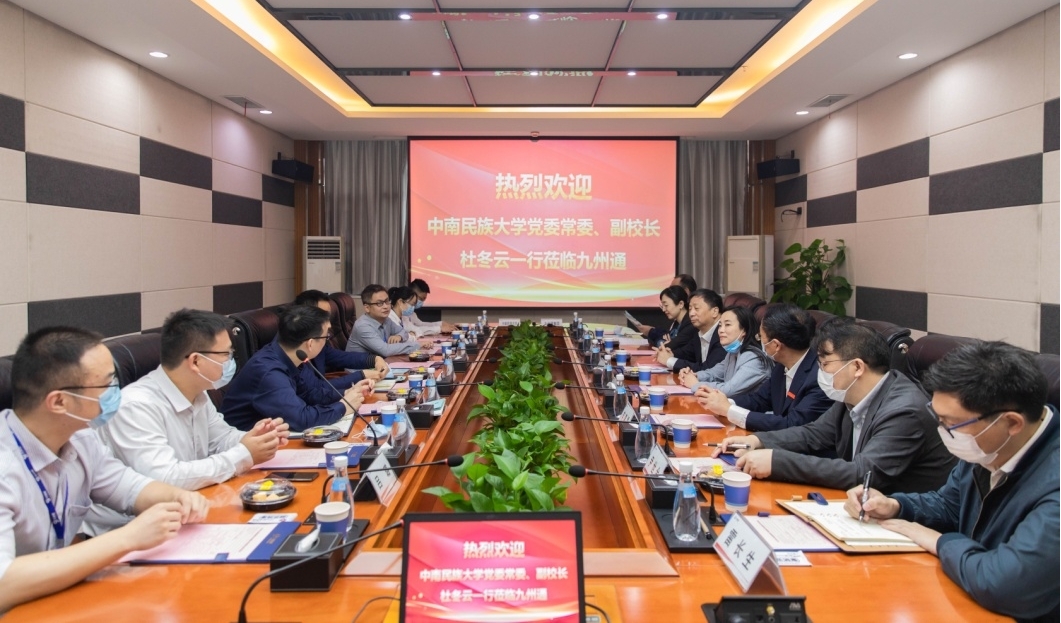 杜冬云一行观看了集团宣传片,与九州通医药集团党委副书记高凡、九州通大学校长何中伟等展开座谈。
