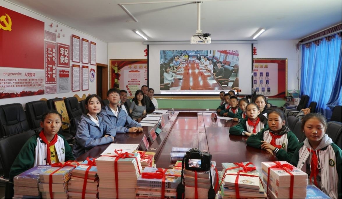结巴乡小学与威尼斯官网师生代表云端相聚高原书屋捐赠仪式现场。索朗多吉摄