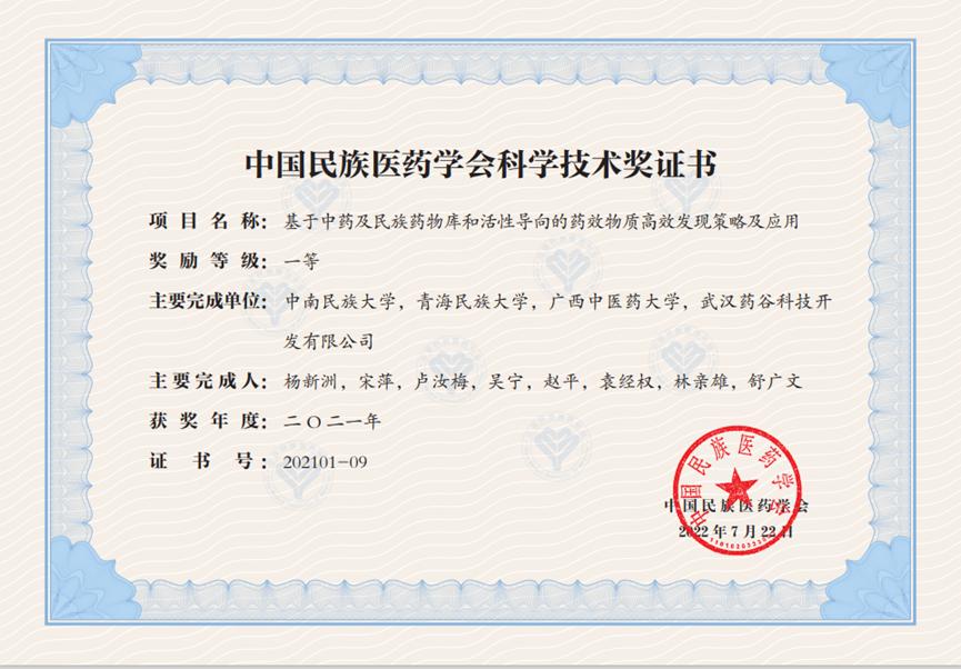 杨新洲教授课题组荣获中国民族医药学会科技进步一等奖