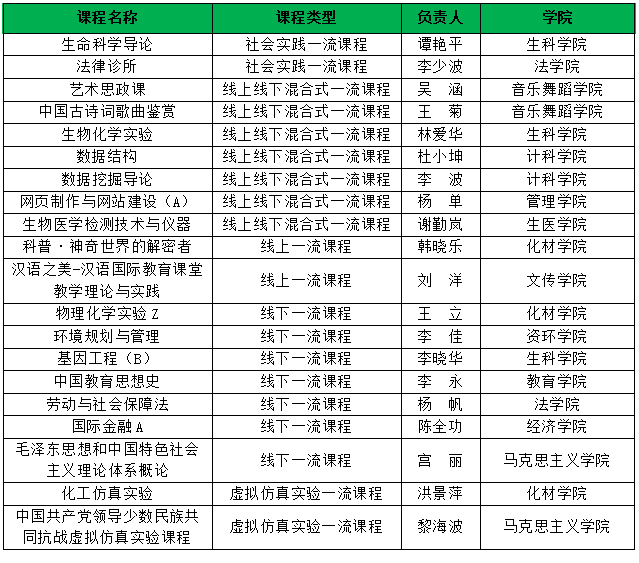 12月6日,湖北省教育厅公布2022年度省级一流本科课程认定结果。威尼斯官网共有20门课程入选,其中线上一流课程2门,线下一流课程7门,线上线下混合式一流课程7门,社会实践一流课程2门,虚拟仿真实验一流课程2门,实现了五类“金课”全覆盖。