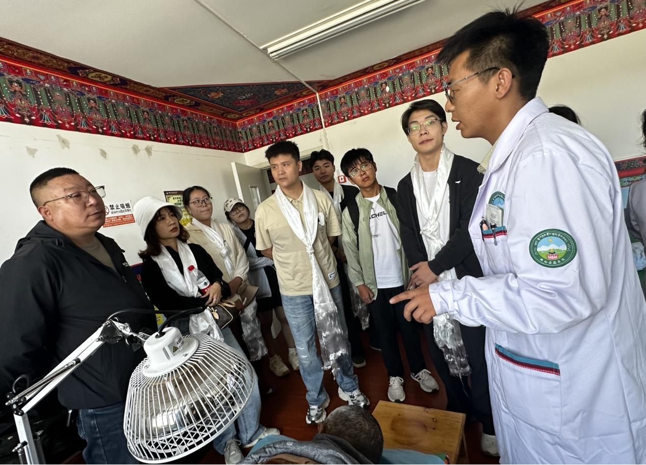调研队在曲松县藏医院了解藏医与现代医技结合疗法。 倪珊摄