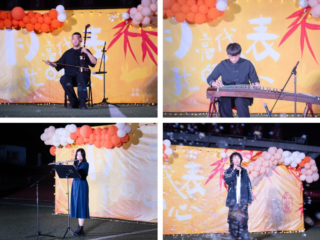 晚会以“月”为轴,以“情”为线,精心编排的节目依次登场。朗诵节目以深情的语言,营造出“江月年年望相似”的诗意氛围;街舞串烧以活力节奏点燃月色下的操场;舞蹈则通过傣乡月夜、荷塘月色、雪域高原等意象,展现多元文化的魅力;笛声悠扬、古筝潺潺、二胡婉转,传统乐器交织出对民大人的真挚祝福。独唱环节中,或深情款款、或热情饱满的歌声,传递出最纯粹的情感共鸣。