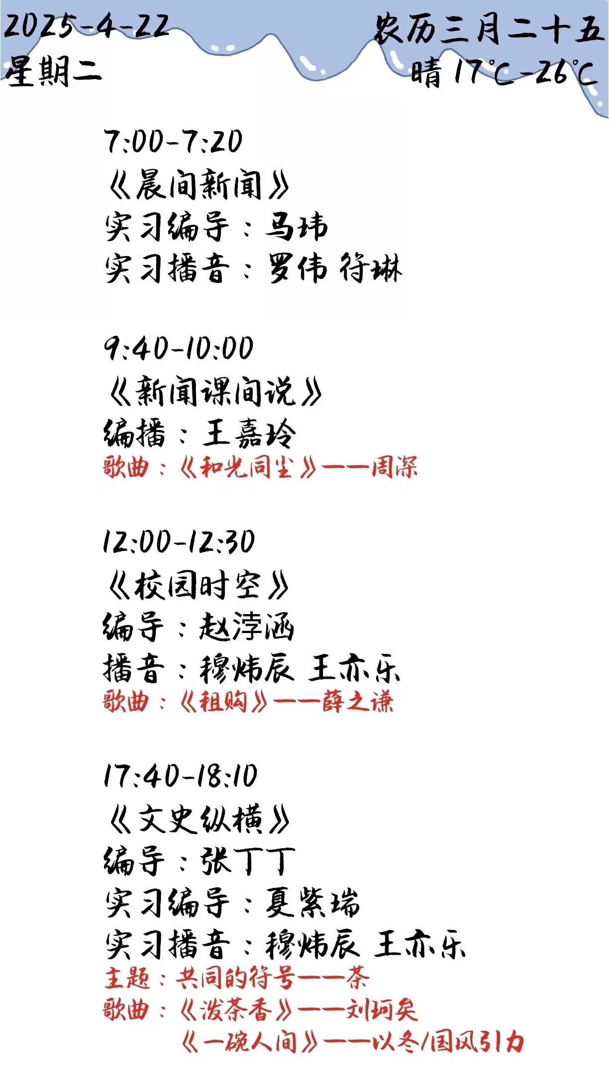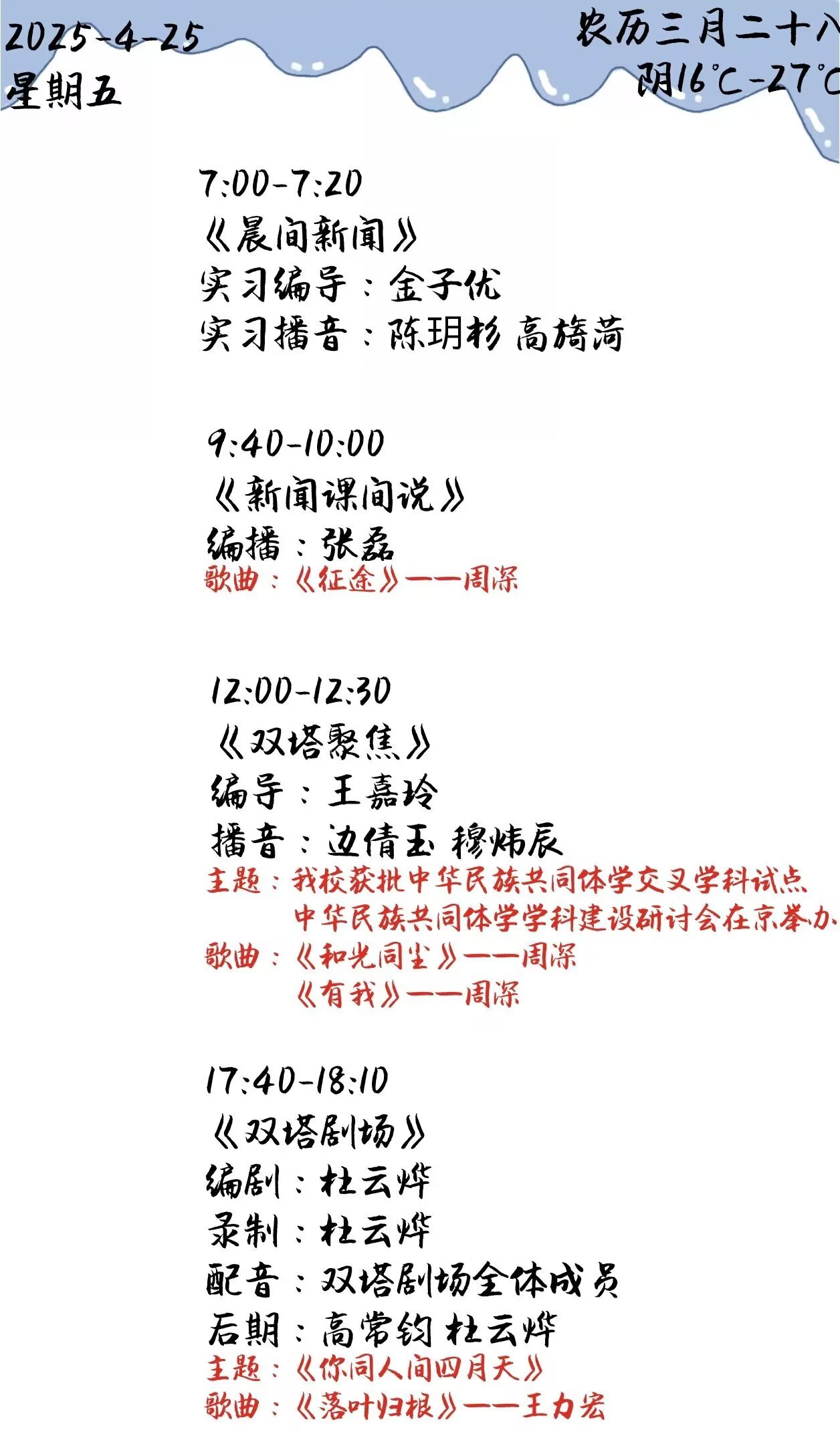 上一篇: 双塔之声2025年第一学期第10周节目单(2025.4.28-4.30)