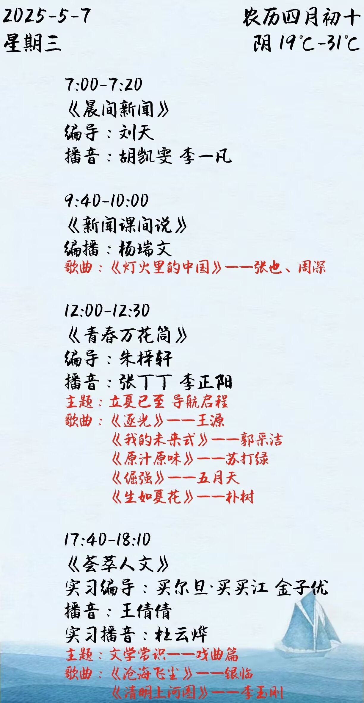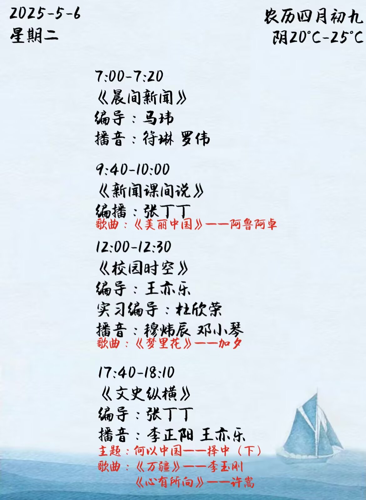 上一篇: 双塔之声2025年第一学期第12周节目单(2025.5.12-5.16)