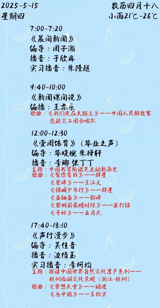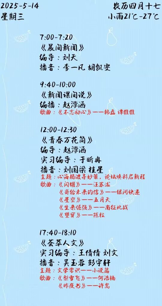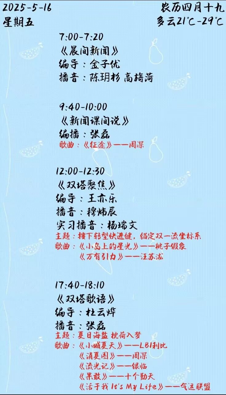 上一篇: 双塔之声2025年第一学期第13周节目单(2025.5.19-5.23)