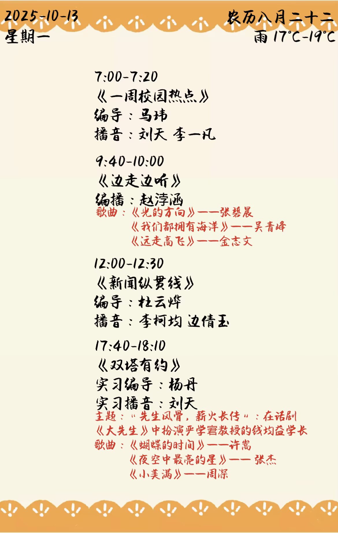 下一篇: 双塔之声2025年第二学期第5周节目单(2025.10.9-10.12)