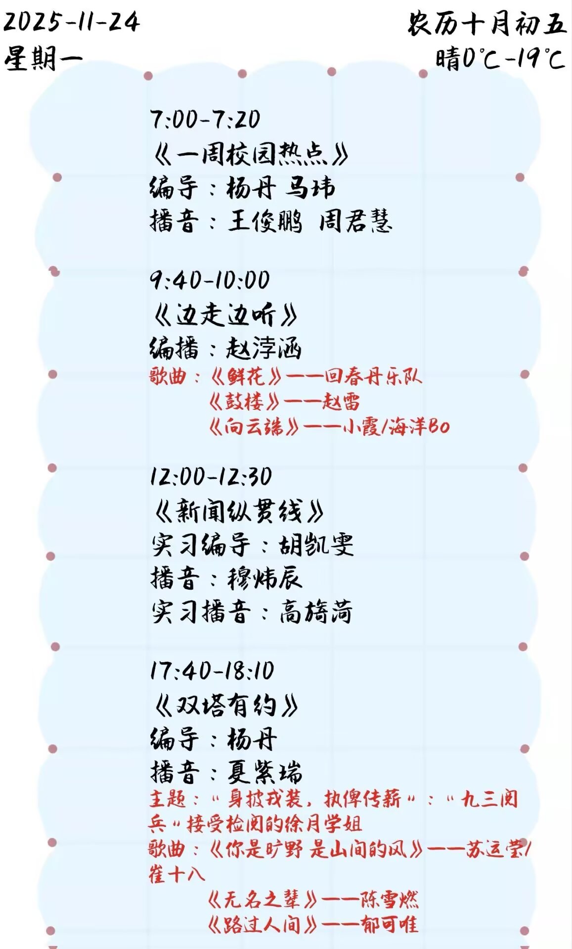 下一篇: 双塔之声2025年第二学期第11周节目单(2025.11.17-11.21)