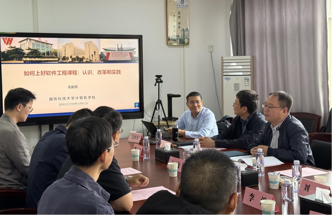 会上,毛新军教授以“101计划”实施背景与目标为导向,作了题为《如何上好软件工程课程——认识、改革和举措》的专题报告。报告紧扣“101计划”核心课程建设要求,系统阐述了“软件工程”课程建设与实践的创新经验与改革路径;从教材建设定位与教学理念重构、知识体系优化、教学实践创新三大维度深度剖析了课程改革的顶层设计逻辑与具体实施策略。他还分享了国防科技大学在“软件工程”课程建设与实践中的经验,介绍了课程改革的思路与阶段性成果。