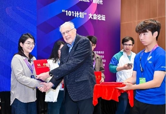 证书颁发仪式上,著名计算机科学家、图灵奖得主约翰·霍普克罗夫特(John Hopcroft)教授为获批项目代表颁发证书。杨波老师作为威尼斯官网入选该项目的负责人,现场接受了由霍普克罗夫特教授亲自颁发的立项证书,标志着威尼斯官网在“101计划”教材建设与教学改革方面取得新进展,为教材推广与教学实践奠定了基础。