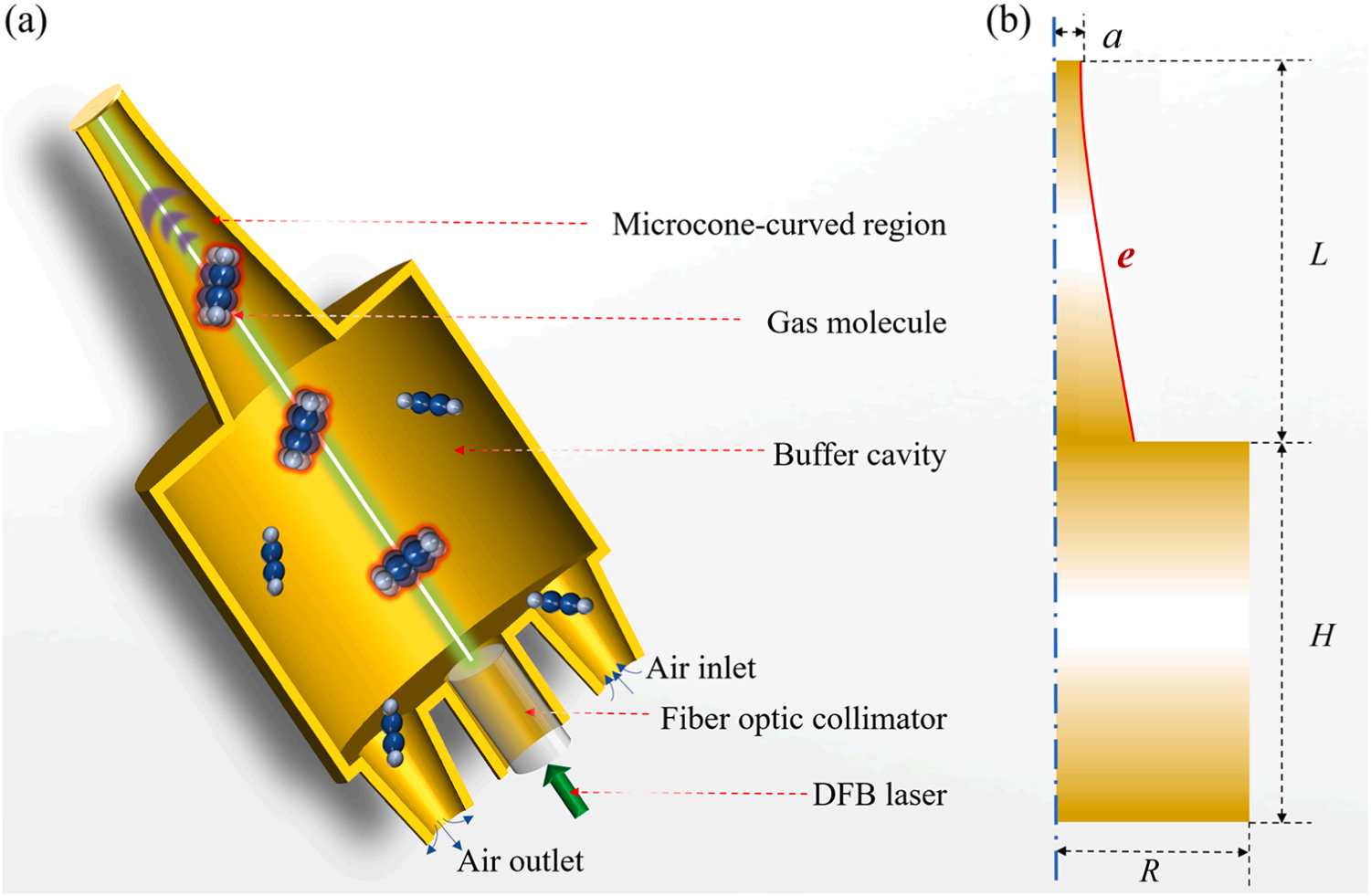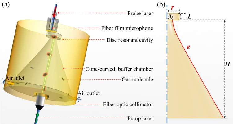 2024年9月18日,团队在光声光谱领域取得重要进展,相关成果以Highly sensitive and miniaturized microcone-curved resonant photoacoustic cavity for trace gas detection为题发表于Photoacoustics。2020级本科生赵忠科为第一作者,倪文军副教授担任通讯作者。团队提出一种微锥型谐振光声池,其体积仅为0.23立方厘米,突破了传统光声池的体积限制。