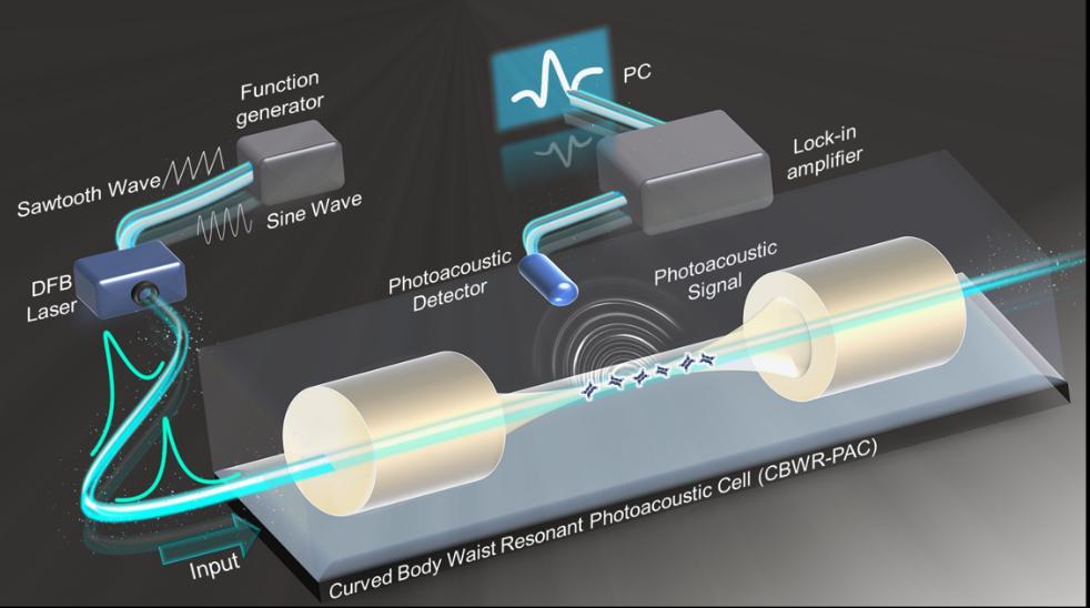 8月19日,团队以Three-dimensional optical path extended gourd-type photoacoustic cell for highly sensitive trace acetylene sensing为题在Photoacoustics上发文,2024级研究生钱川文担任第一作者,倪文军副教授为通讯作者。该研究提出了一种采用黄金比例的耦合球形缓冲腔和非周期性三维光路设计的葫芦型光声池显著延长光程,在气体检测性能方面显著优于多数同类系统。