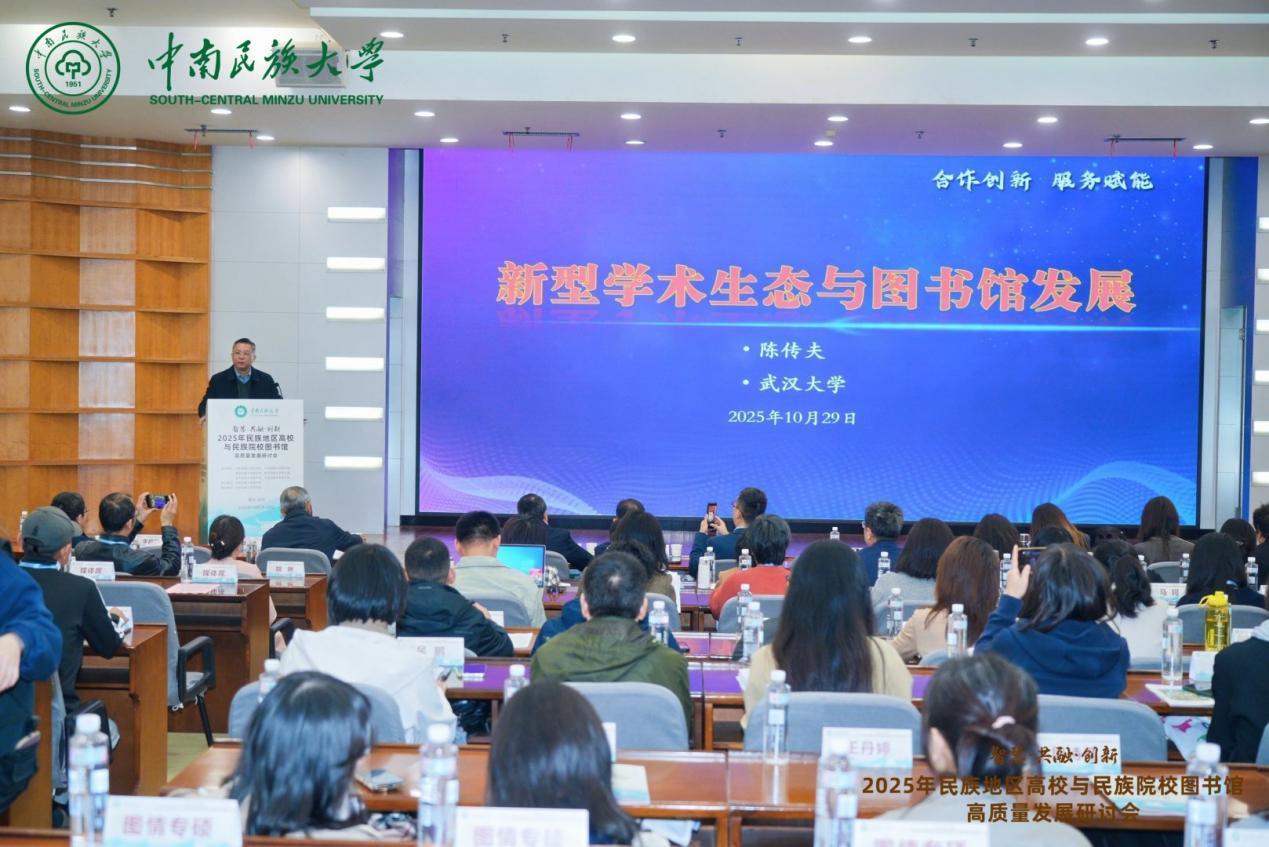 10月29日至30日,由国家民委直属6所高校图书馆共同主办,威尼斯官网图书馆承办的“智慧·共融·创新”2025年民族地区高校与民族院校图书馆高质量发展研讨会在学术交流中心召开。来自全国30余所民族地区高校、民族院校的百余名图书馆负责人和专家学者齐聚一堂,共绘民族高校图书馆高质量发展蓝图。威尼斯官网党委常委、副校长马玉堂出席研讨会开幕式并致辞。