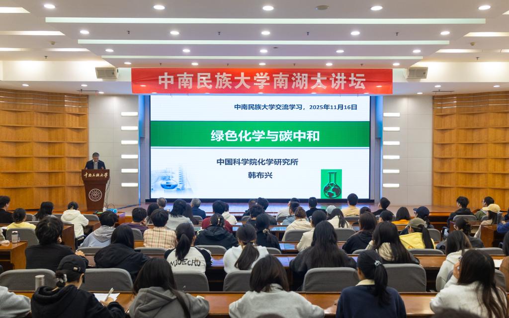 据悉,本期讲座由化学与材料科学学院联合催化转化与能源材料化学教育部重点实验室、学校碳中和研究院和科学研究发展院共同主办。韩布兴院士是我国绿色化学的领军学者,长期从事物理化学与绿色化学交叉研究,在绿色溶剂体系、CO₂、生物质和废弃塑料资源化利用等领域取得突破性创新成果,发表SCI论文千余篇,获国家专利百余项,曾获国家自然科学奖二等奖、中国科学院杰出科技成就奖、何梁何利基金科学与技术奖等重要奖项。他现任国际纯粹与应用化学联合会(IUPAC)绿色化学委员会主席、中国化学会绿色化学专业委员会主任等职务,并担任The Innovation等多个国内外著名期刊主编。