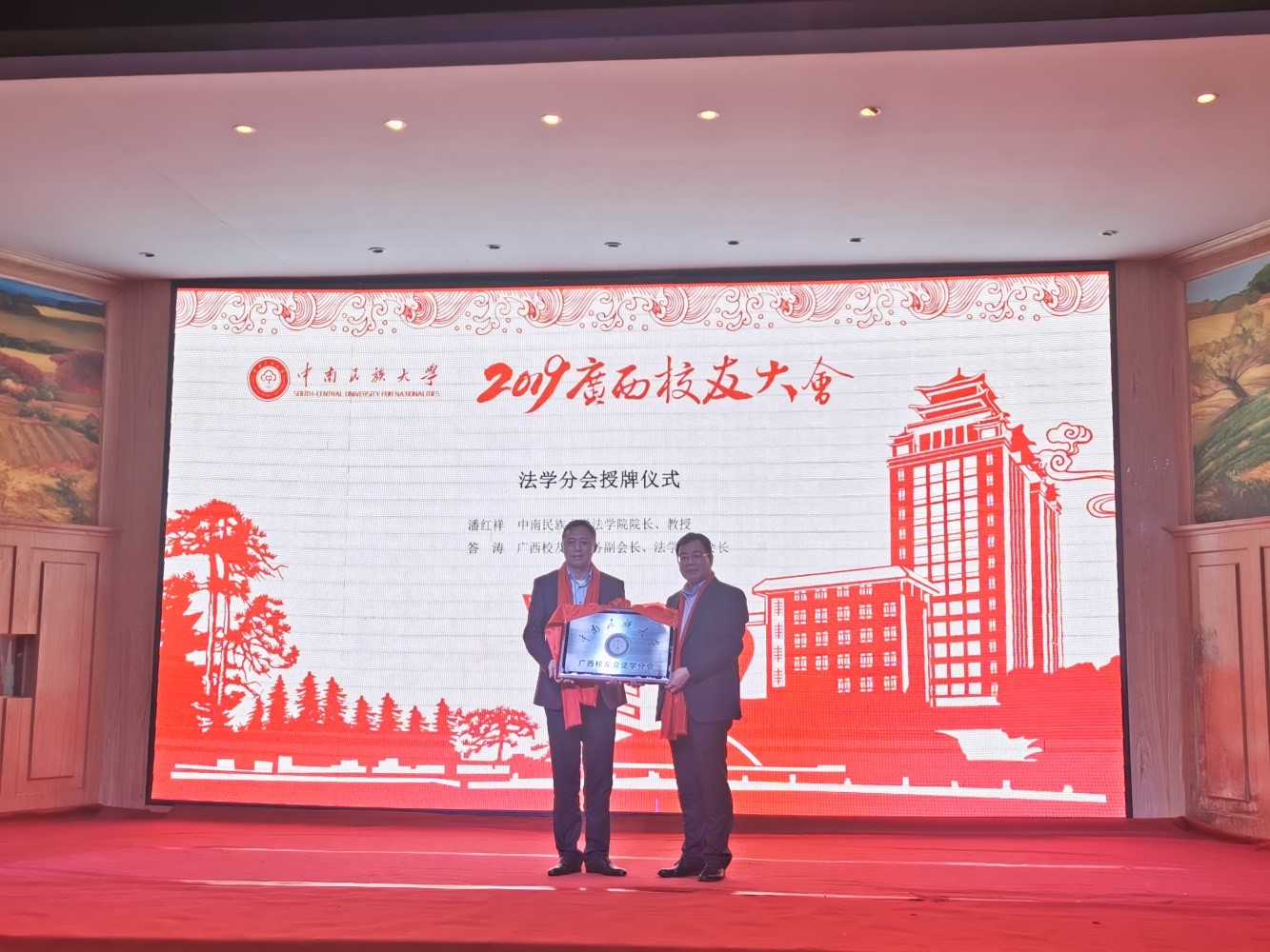 大会首先由广西校友会会长黄全胜作广西校友会近年来工作报告。随后,中南民大广西校友企业之家“广西火之舞投资有限责任公司”举行股东签约仪式和会员单位签约仪式,“校友企业之家”正式宣告成立。会上,学校领导、法学院领导、广西校友会领导共同为新成立的广西“校友企业之家”和广西校友会法学分会授牌。