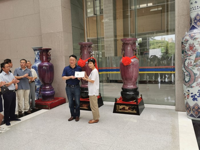 85级的中文系校友们还集体为母校捐赠钧瓷花瓶一对,捐赠仪式在学术交流中心举行,学校党委副书记白江源代表学校接受捐赠。这对花瓶诠释了校友们心系母校、感恩母校的深厚情怀,更寄托着对母校未来发展的美好祝愿。白江源书记表示:“大家千里迢迢地赶到母校为母校送上最诚挚的祝福,学校感受到校友对学校的情深意切,同时也希望在以后的日子里大家工作顺利、身体健康,有时间多回母校聚一聚。”