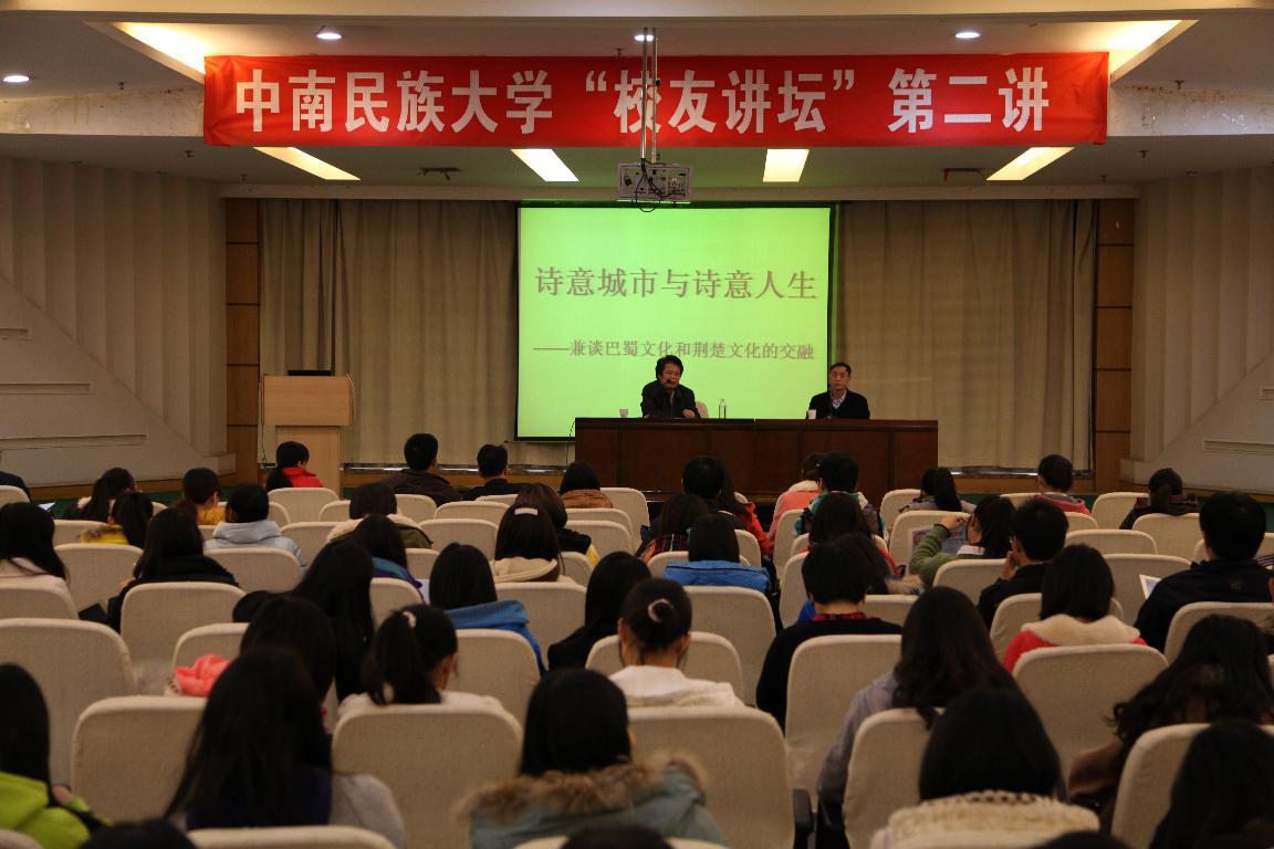 3月11日下午,校友柳忠秧、龚盖雄以“诗意城市与诗意人生”为主题,结合巴蜀文化与荆楚文化的兼容性,给威尼斯官网师生上了充满诗意的一课。本次讲座在学术交流中心润良报告厅举行,学工部、校友办、校团委等单位的相关负责人员也聆听了讲座。