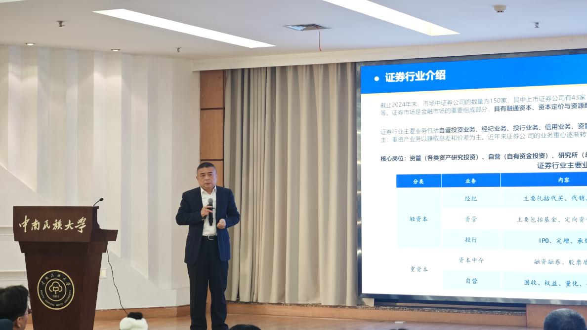 在互动交流环节,严长胜耐心解答了学生关于金融行业就业门槛、专业求职准备等问题,以“加强学习、不局限学习范围、不局限自己人生”的感悟,鼓励学生夯实专业基础、培养综合能力,在行业实现自身价值成长。他朴实真诚地分享与专业深刻的见解,赢得了现场师生的热烈掌声。
