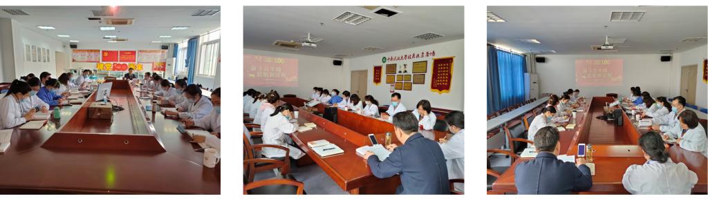 最后,钟利书记对此次党史学习教育提出三点要求。一是切实加强党史学习教育。 即各小组、 各支部要积极行动起来,把开展党史学习教育活动作为一项重要政治任务来抓,承担起各自主体责任。尤其各支部要将“三会一课”和主题党日与党史学习教育实际相结合,开展主题突出、特色鲜明、形式多样的学习活动。二是认真完成规定学习内容。每位党员要认真学习党史相关书籍,按照规定内容坚持集中学习和自主学习相结合,坚持规定动作和自选动作相结合。无论党员或入党积极分子都要全身心投入,做到学有所思、学有所悟、学有所得。三是结合国家民委大学习、大讨论、大调研、大培训活动,将党史学习融入铸牢中华民族共同体意识工作,融入医务人员的本职工作。扎实做好“健康教育进校园”、“社区结对帮扶”、义诊宣传、爱国卫生运动等,将“我为群众办实事”时刻牢记在心,用医务人员特有的专长为师生谋福利。